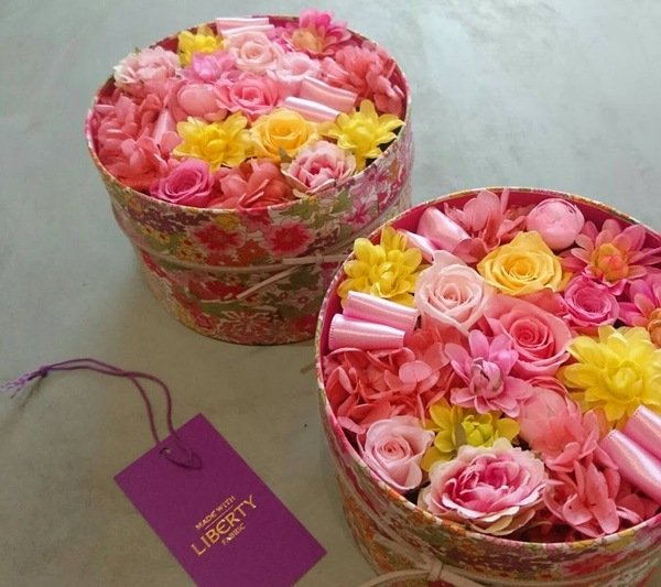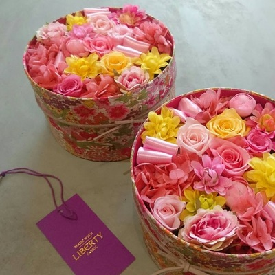 ・リバティプリントボックスのプリザーブドフラワーアレンジメント¥5,500