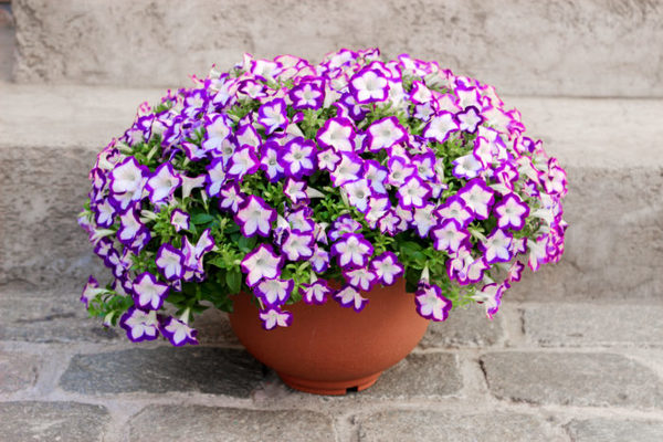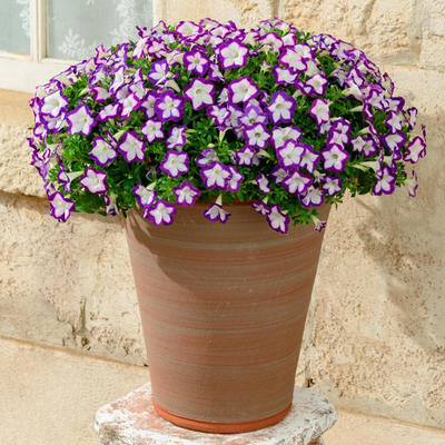 波打つように次々と花が咲くことから「サーフィン」と「ペチュニア」を組み合わせて「サフィニア」と名づけられて、それまでのペチュニアにはなかった豪華に咲きしだれる花と育てやすさから、初心者の方からベテランさんまで人気なんです♪