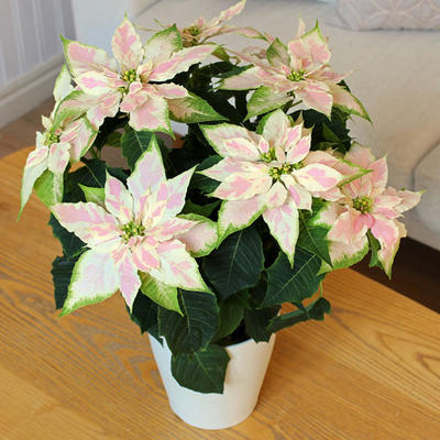シャープな緑色のふちどりが美しいプリンセチアです。