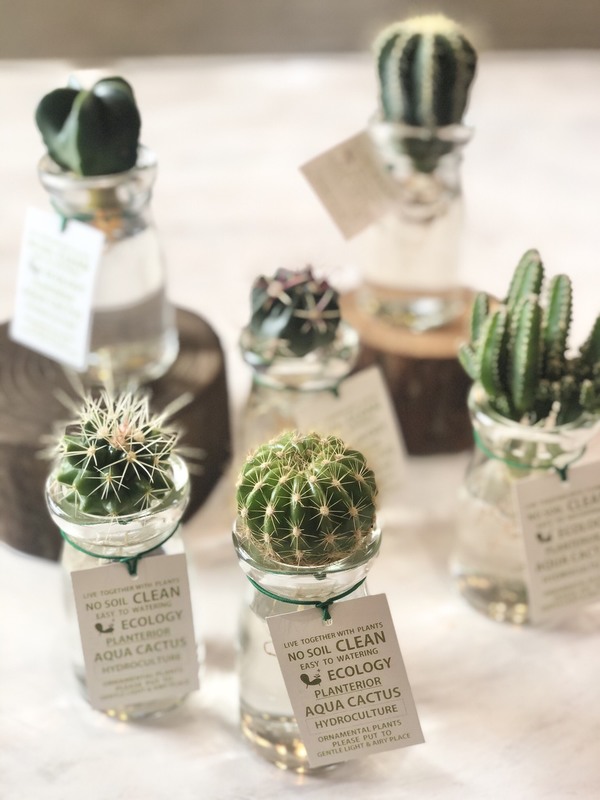 水耕栽培のサボテンやお洒落なガラスで楽しむ観葉植物が入荷いたしました。