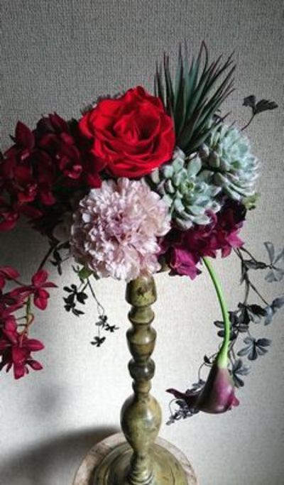 印象的な、存在感のあるアレンジメントに仕上げさせて頂きました。